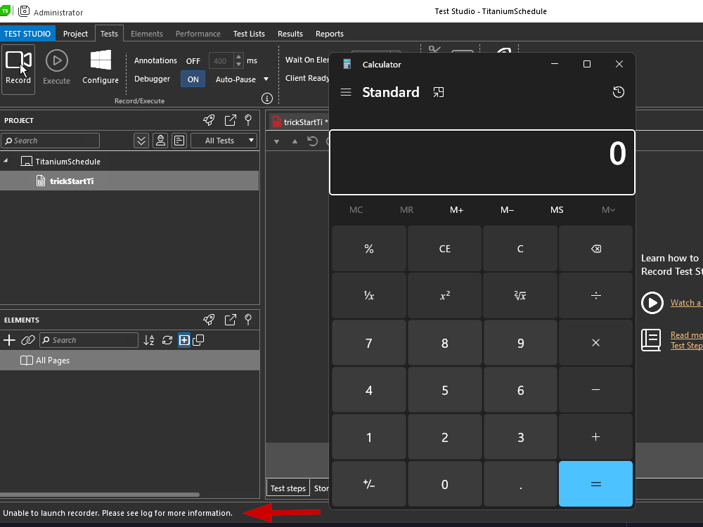 This is the only thing in the log after setting the test to start the Microsoft Calculator: