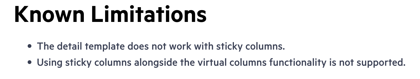 I see that sticky columns in master/detail grids aren't supported. But if the sticky column is on the right of the grid, it seems to work fine. Is there a potential risk I'm overlooking? We have grids with potentially long rows, but want to keep the command button on the far right showing regardless of how wide the rows are.