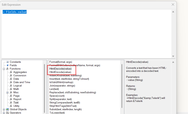 Have you check the HTML TextBox Item? This item is used for rendering rich text data. You can find additional details here -> https://docs.telerik.com/reporting/report-items/htmltextbox/overview