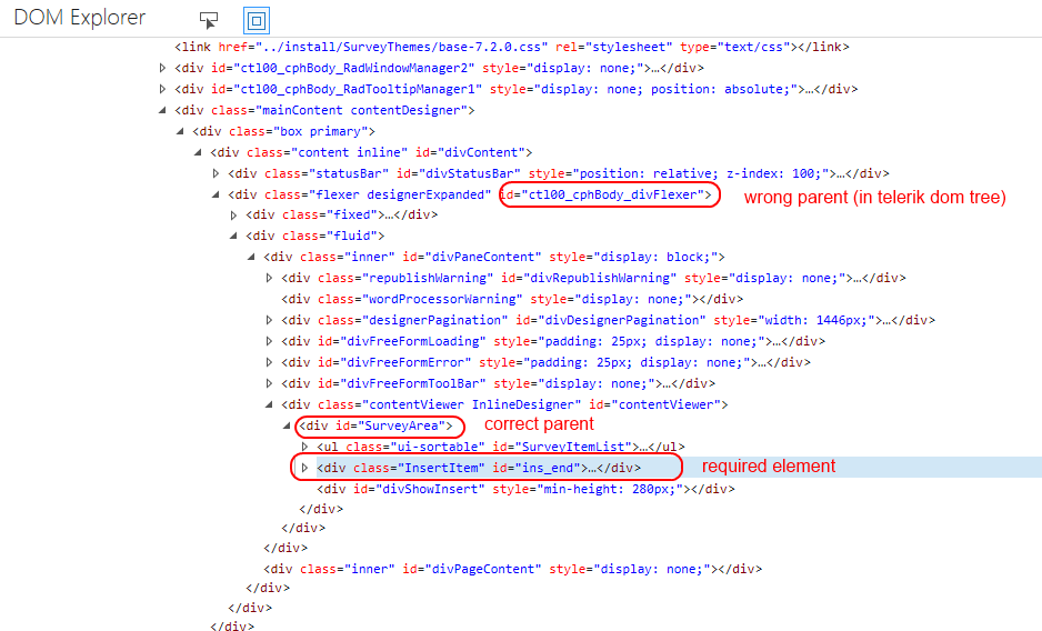 Moreover, the Root.OuterMarkup is malformed (no end tags for some elements). As a result, Telerik can't find required elements and found them on different hierarchy level. Please, look at the pictures for better understanding. I've also attached the content of properties, mentioned above. Unfortunately, I can't provide you access to environment, but seems it should be enough to see the difference and use for debugging purposes.