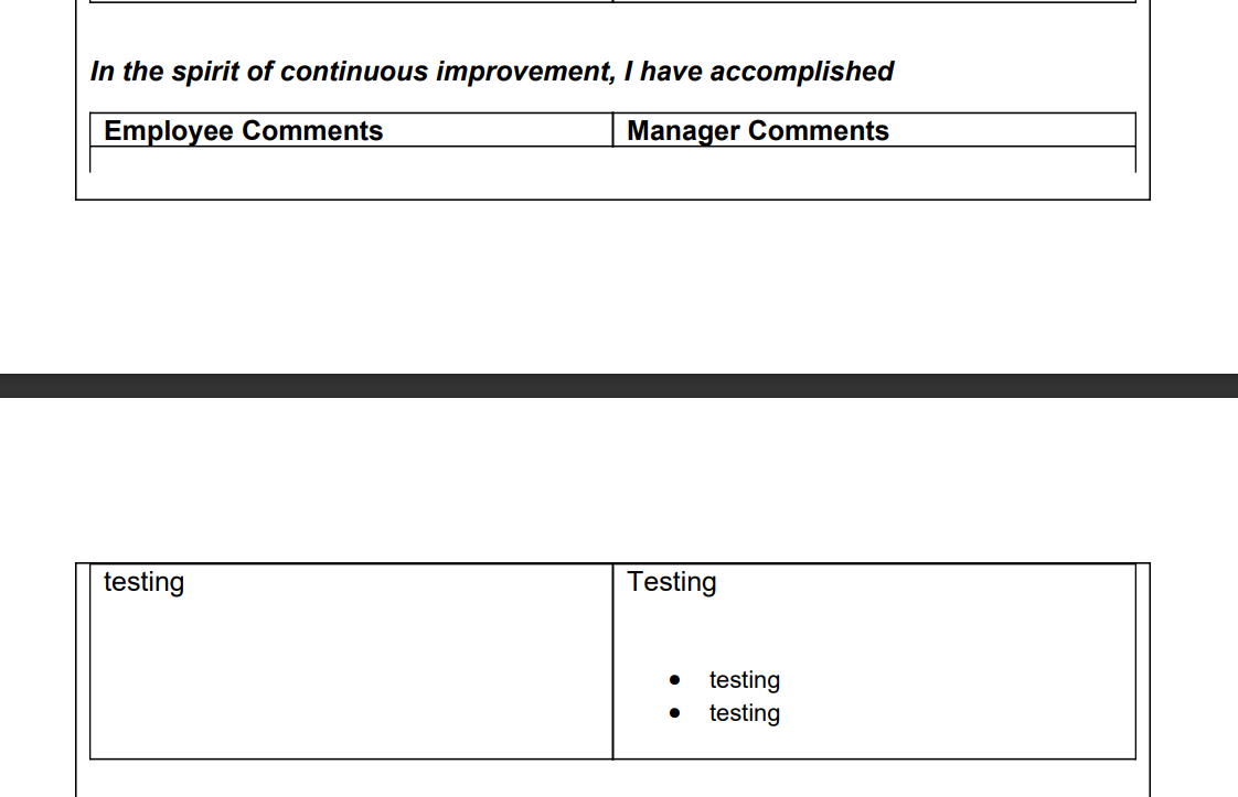 The form fields are rich textboxes that can have varying degrees of content, from single lines to who knows how many.