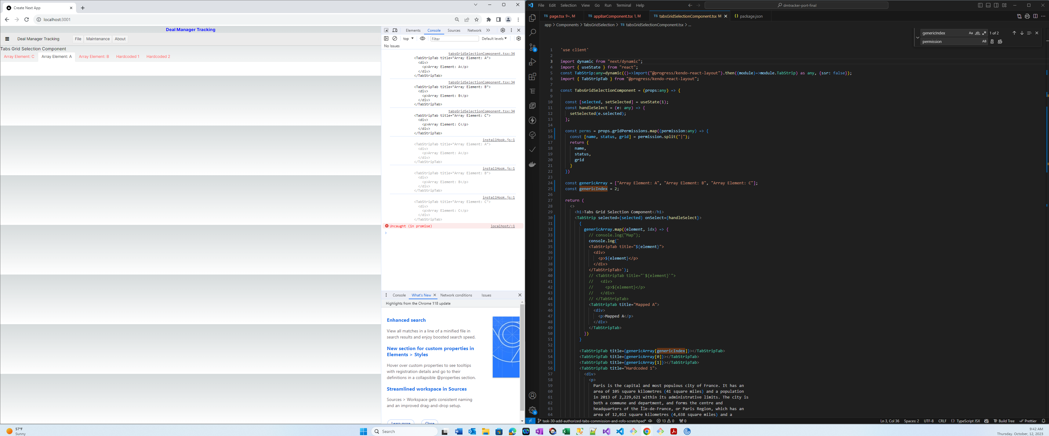 I would like to put some tabs into my <TabStrip> dynamically. Please refer to the attached graphic, lines 45-49 don't seem to be giving me output to the DOM.