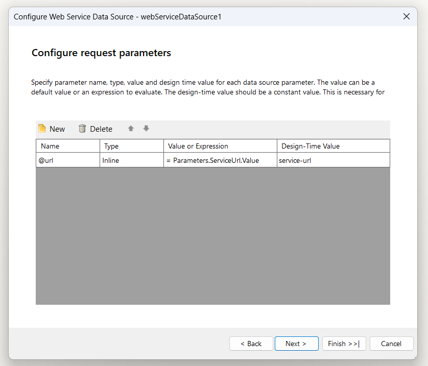 Scenario: My API domain is https://abcapi.com, which is used in every report under the "Configure Data Retrieval" window of the Web Service Data Source.
