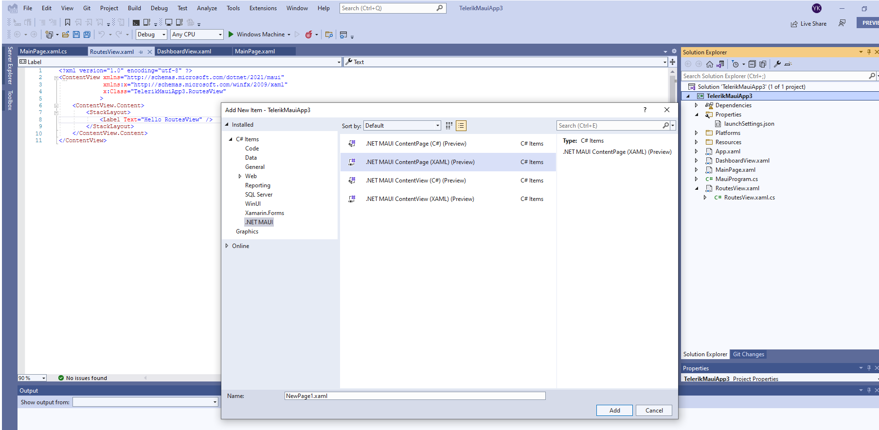 In addition, if you have Telerik UI for .NET MAUI installed through the MSI installation, you can use our VSExtensions and create directly a new .NET MAUI app pre-configured to use the Telerik.UI.for.Maui nuget package. Please take a look at the following topic for more details on this: Visual Studio Extensions.