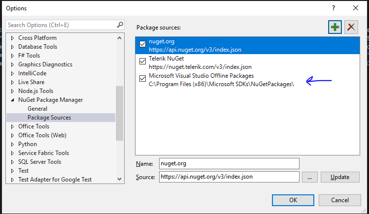 Microsoft Visual Studio Offline Packages nuget source comes with the Visual Studio installation to help restore some system nuget packages without network. I noticed you have our Telerik NuGet configured, so you're ready to install Telerik.UI.for.Maui nuget package.
