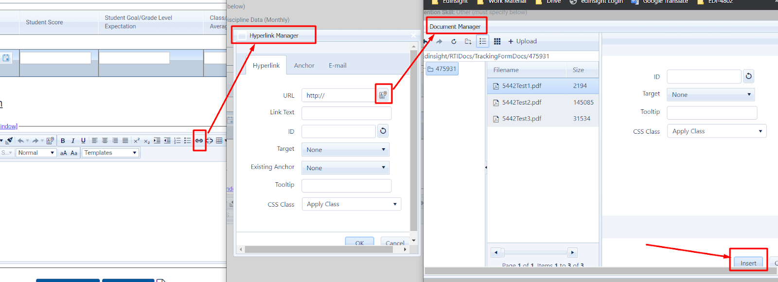 Since the hyperlink Manager is an inbuilt functionality of the RadEditor, how could I access the url text box to get the text and replace the same with encrypted url at the same time when adding an attachment from the document manager.