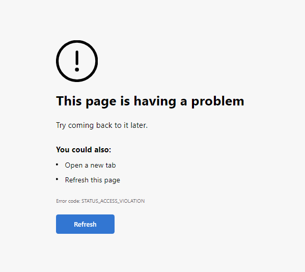 'Error code: STATUS_ACCESS_VIOLATION'. Could you please assist me in resolving this issue?