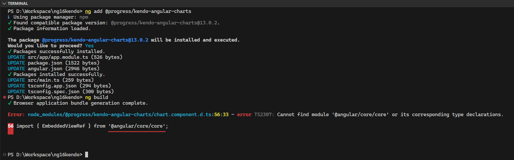 Error: node_modules/@progress/kendo-angular-charts/chart.component.d.ts:56:33 - error TS2307: Cannot find module '@angular/core/core' or its corresponding type declarations.