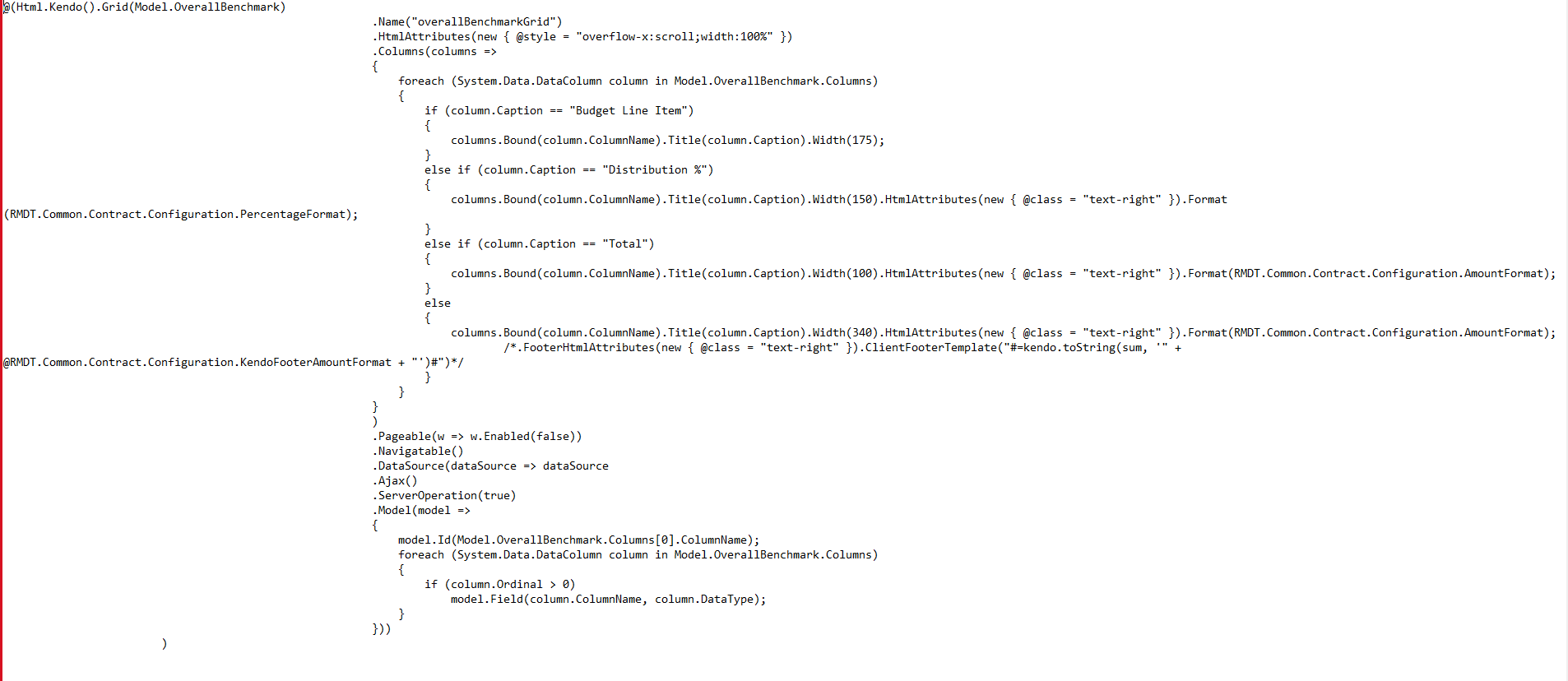 We bind Kendo Grid column dynamically from DB in .net MVC.While we bind that column in Kendo Grid it will give me an error in Browser Console like