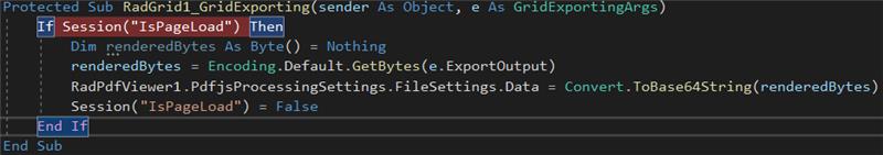 ProtectedSub RadGrid1_GridExporting(sender AsObject, e As GridExportingArgs)
