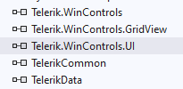 The mentioned namespaces are located in the TelerikData DLL. Can you double-check if this DLL is referenced to the project? If yes, you can also check if all required by the RadGridView assemblies are also referenced. Check the image below: