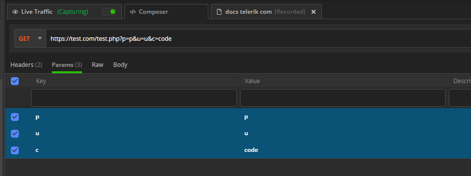 Consider using the new Fiddler Everywhere in which you can simply put the sample URL in the Composer and add the wanted params automatically.