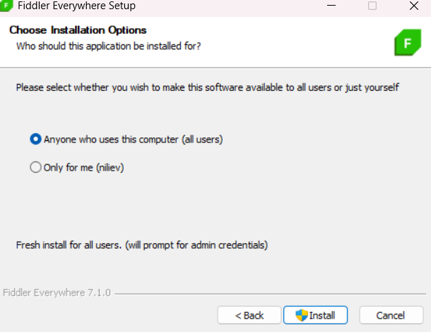 "I updated from windows 10 to windows 11...Fiddler Everywhere was working last week when I was using on Windows 10. After upgrading, I tried to use it again today and cannot establish a remote connection to monitor traffic from a mobile device. I noticed when I first opened Fiddler I received a windows firewall notification. The option to "allow" was greyed out and I could only close the prompt. I am assuming the problem with connecting is related to the firewall but these seem to be managed by the organization. Please help allow traffic through Fiddler to assist in my debugging workflows."
