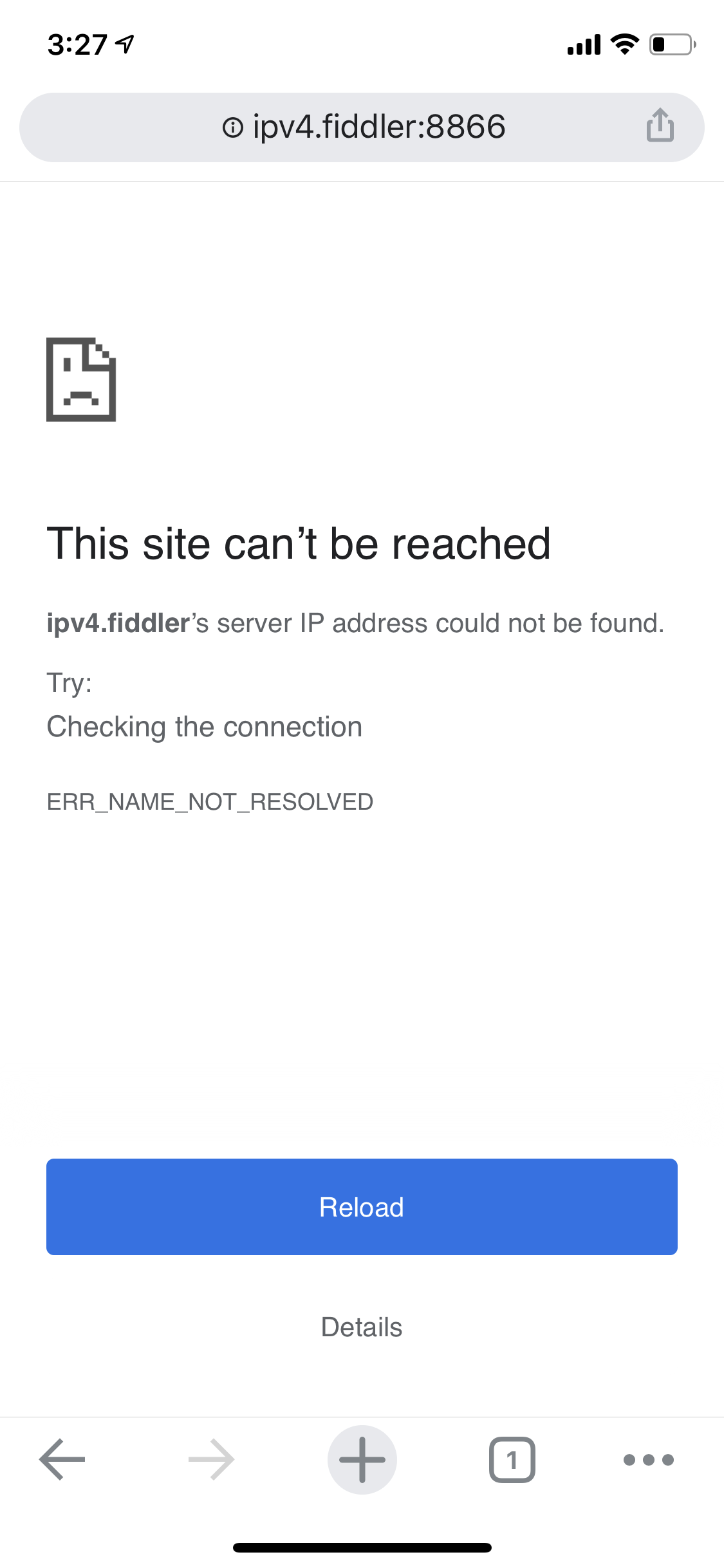 Basically once I configure the wifi proxy in my iPhone I'm no longer able to navigate and so I'm not able to reach http://ipv4.fiddler:8888 to download the certificate.