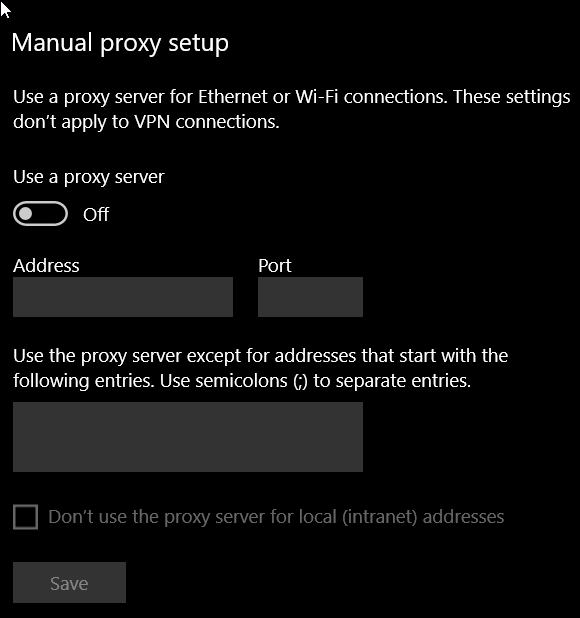 Lastly, I recommend verifying the Proxy Settings are not configured when Fiddler is Running. See the below screenshots for the proxy settings that are not configured.