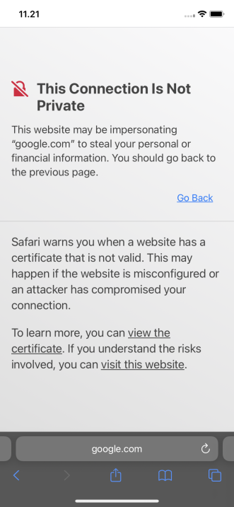 And yet, if I try to visit e.g. https://google.com/ in Safari, I get an error message telling me that "This Connection Is Not Private":