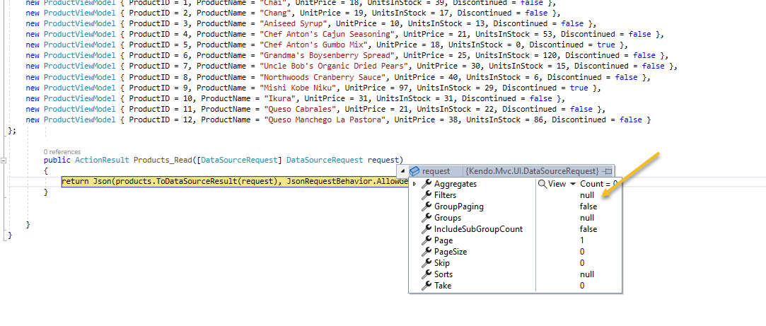 { field: "ProductName", value: "Chai", operator: "contains" }