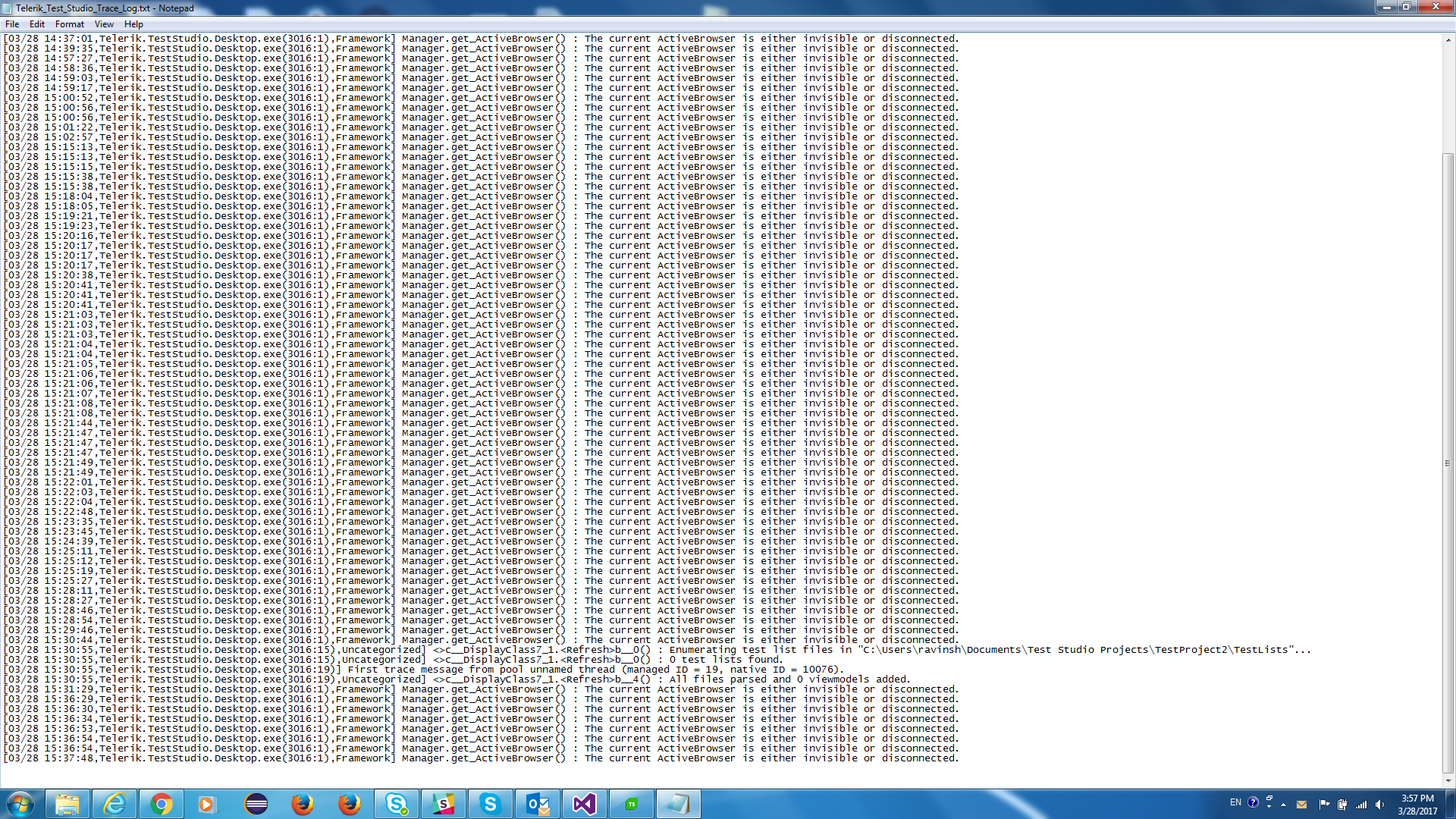 "Telerik.TestStudio.Desktop.exe(8804:1),Framework] Manager.get_ActiveBrowser() : The current ActiveBrowser is either invisible or disconnected."