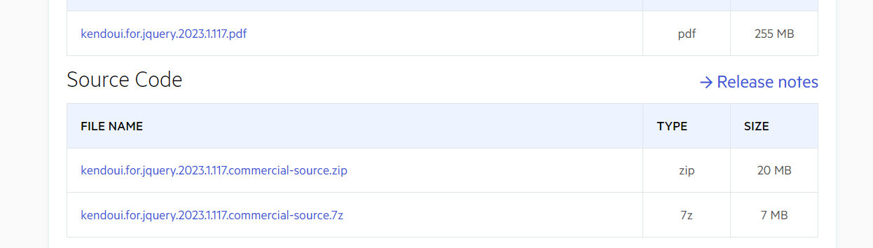 <script src="https://code.jquery.com/jquery-1.12.4.min.js"></script> <script src="https://kendo.cdn.telerik.com/2023.1.117/js/jszip.min.js"></script> <script src="https://kendo.cdn.telerik.com/2023.1.117/js/kendo.all.min.js"></script>The jszip script must be added before the kendo.all script.