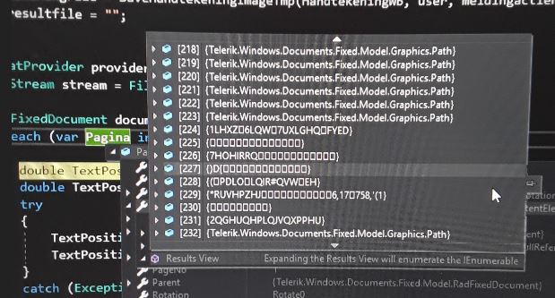 I have attached a snippet of my problem when I'm debugging in Visual Studio and the Telerik Report I try to read.