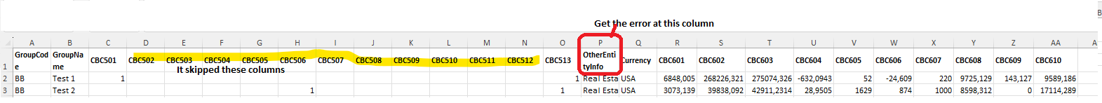 1. It skipped the null cells, it only read data at the cells having value. For example in my case, after reading cell 2 at row 2, it jumped to cell 14.