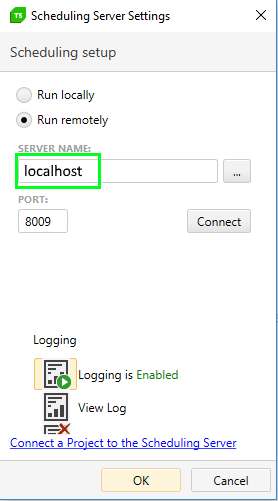 Please, setup the scheduling server at your localhost as I pointed out on the screenshot attached and click on "Connect" button.