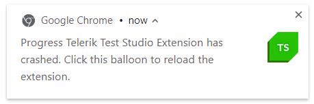 My organisation has recently purchased Telerik Test Studio for Automation, Load and Performance testing purposes. I have started to mess around with it, but found that when I try to record via Chrome, the Telerik extension crashes.