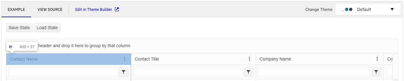 This is after loading the persisted state of the grid. (ie: Clicking the "Load State") This behaviour is the same regardless if you save the state before. After clicking "Load State" without editing anything (in order to keep HTML as close as possible) this is the HTML.