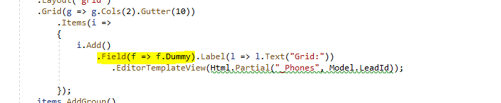 .Field(f => f.Name).Label(l => l.Text("Grid:"))