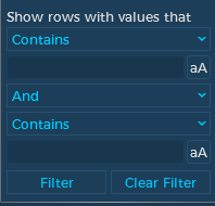 In the first column, there is a filter icon, and it filters correctly. However, in the second column, there is no filter icon. Could you explain why this might be and how to resolve the issue?