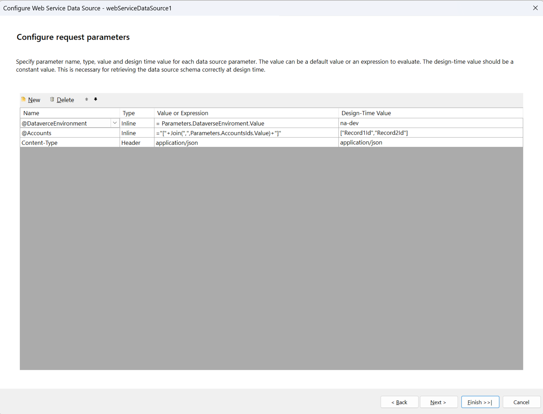 I notice in the REST service call that it is passing hasChildParameters as false. I don't see an option to set that as true.