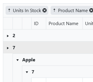 Basically the only issue that I'm still seeing is that when I collapse product name 'Apple' it will close all 'Apple' rows. You can observe this by going to the repro and collapsing 'Apple' product in the units in stock '2', and then scrolling down to the units in stock '7' and seeing there that the 'Apple' is also collapsed.