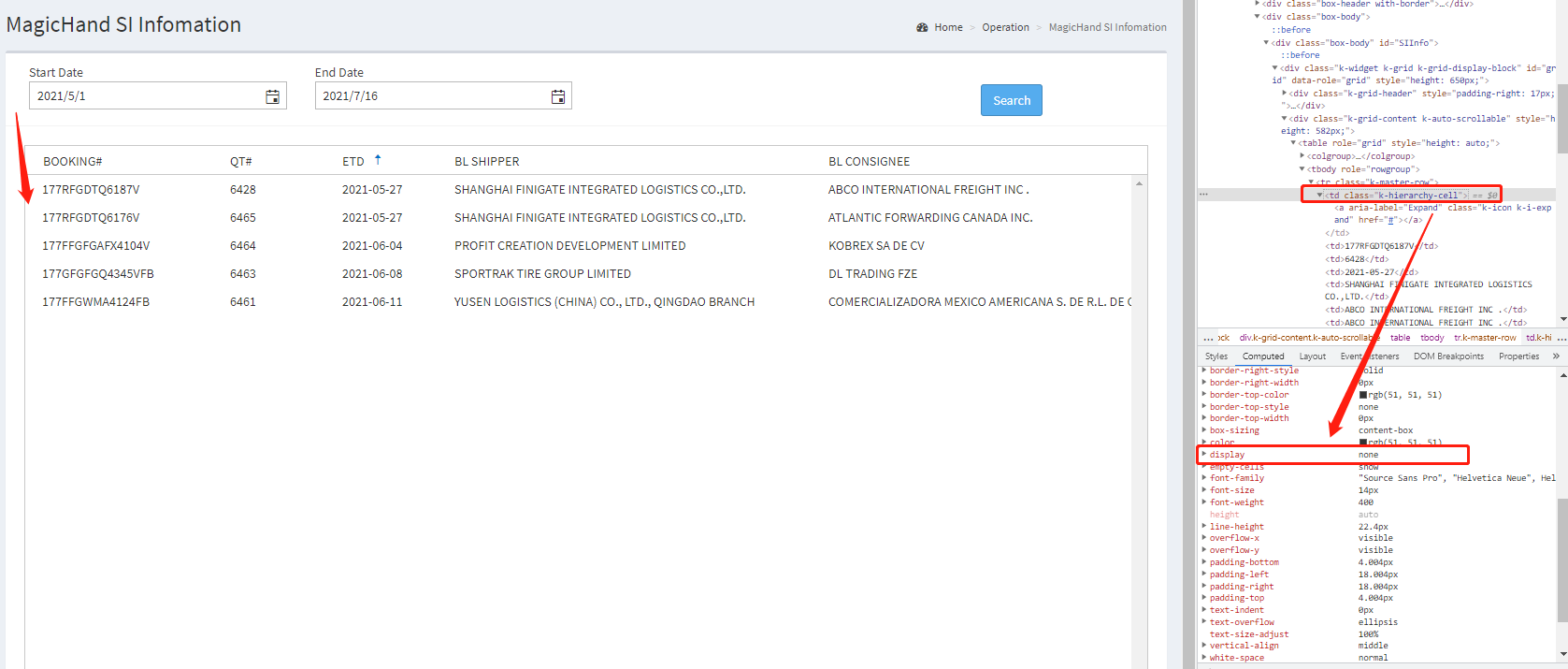 But there's no expend icon in the grid which data was loaded successfully. In page HTML codes, there's <td class="k-hierarchy-cell"> but style.display = 'none'