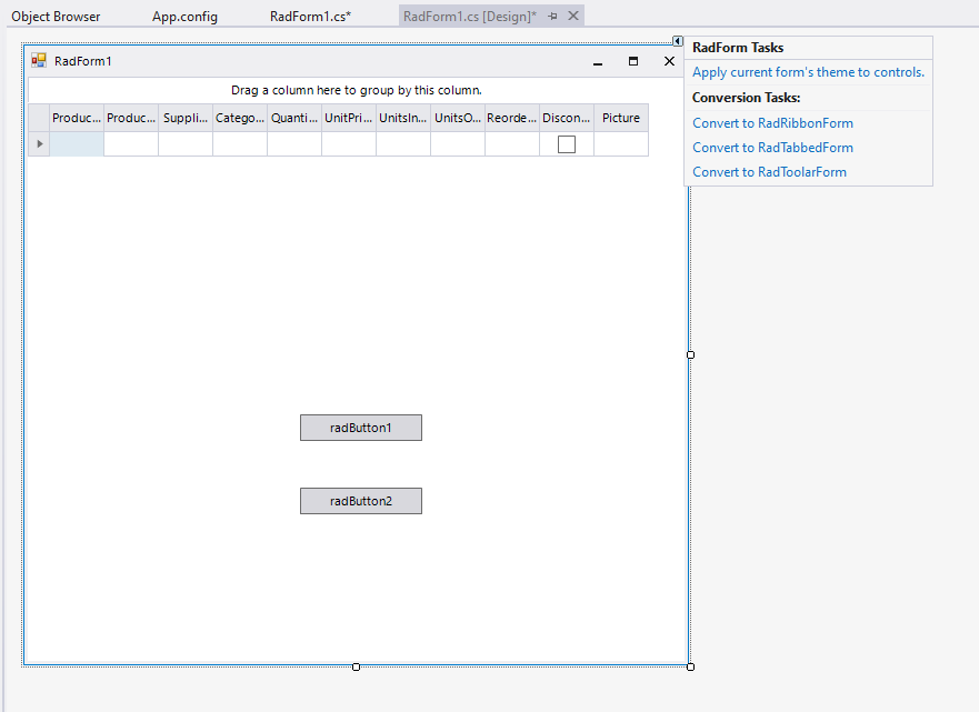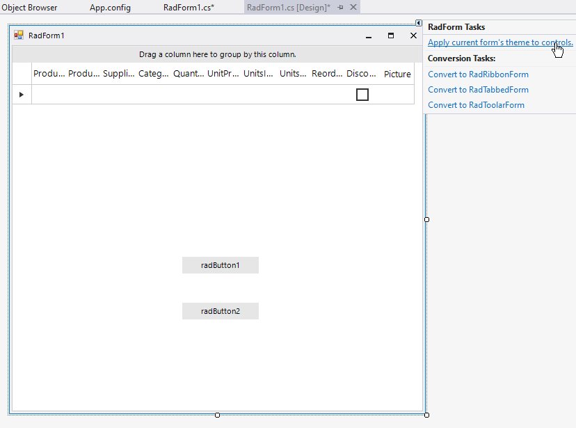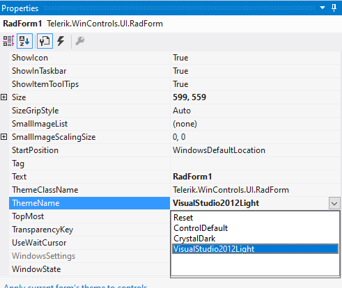 I can view my form, buttons, grids etc in the application theme when using the visual studio designer because I load the application theme in the form constructor.