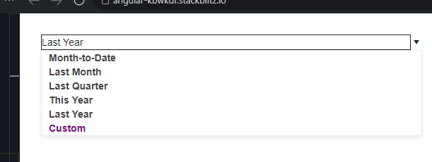 Hi, Currently, I have a kendo dropdown list that looks like this, I want to add a separator between the last two options (not between all options). Here is my requirement. I want to know I can do this with angular.