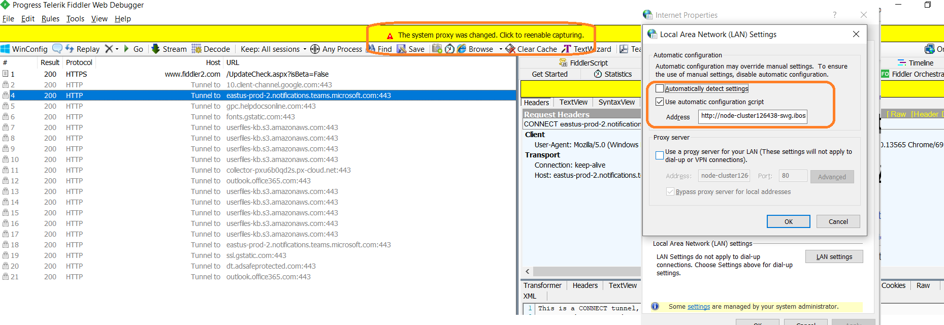 Hi, I am getting the error as attached. This was introduced recently. When i click on enable it stays and then it shows the same error. please help out. Attached the screen. even though i disable the setting in IE, it keeps on enabling automatically. Please help to resolve this issue in fidder to work independently without IE settings.