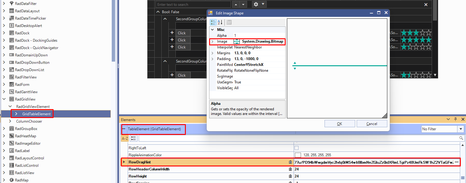 RadImageShape dragHint = new RadImageShape(); dragHint.SvgImage = RadSvgImage.FromByteArray( Resources.black_line); this.radTaskBoard1.TaskBoardElement.ItemDragHint = dragHint;