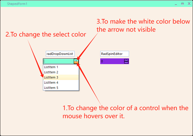 RadDropDownListArrowButtonElementwhen the mouse triggers theradDropDownListcontrol? I have not been able to find a way to modify this color.I try my best to solve it ,but it works not well.