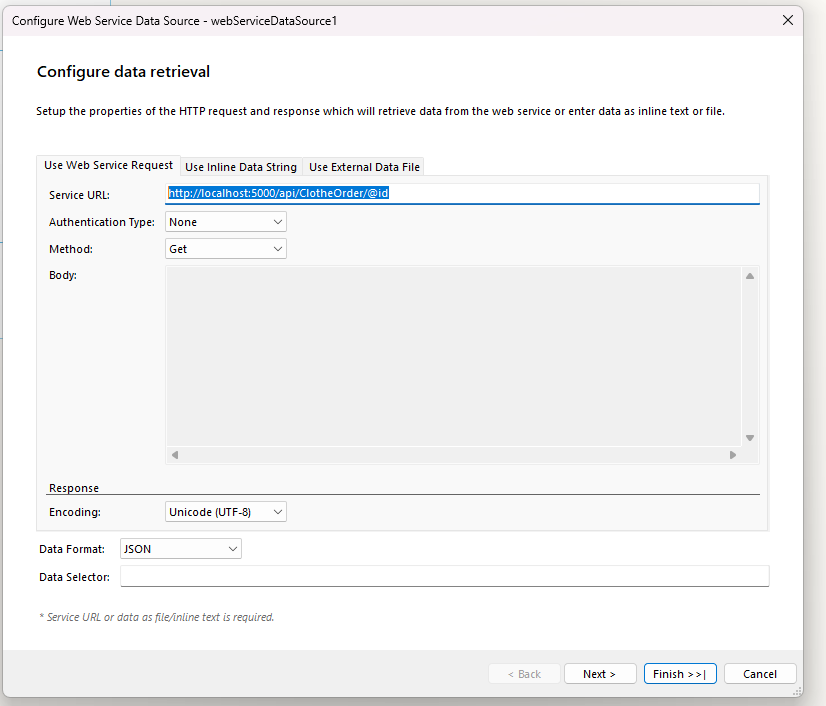 I am currently using a Web Service Data Source in development with the following server URL:
