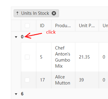 In the Native Components grid of kendo ui for vue, how can I customize the group title and bind events to it? For example, I need to select all the items under a group when the group title is clicked. How can this be achieved?