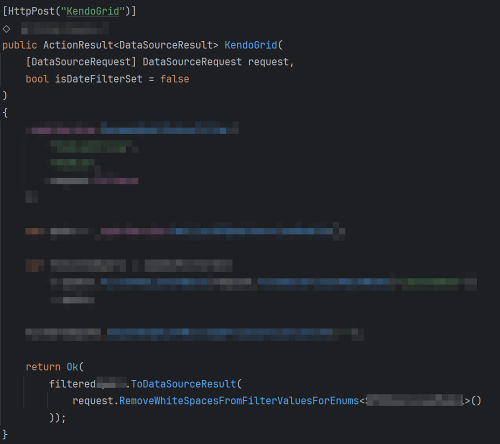I just have an issue with the filters of a Kendo React Data Grid. It can happen that more than 100 filter values are sent to the .NET Web API via the URL. This then causes an error on the server. Probably due to the length of the request URL or also due to the nesting depth of the JSON. Can the DataSourceRequest also be sent with the body or is it necessary to implement this via the URL?