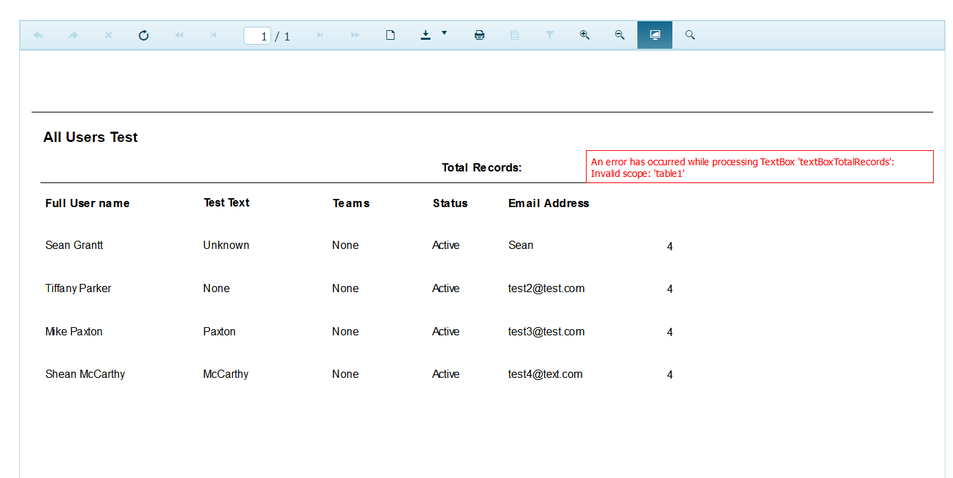 I tried to use something like setting this: textBoxTotalRecords.value = RowNumber("table1") in the textbox value but not success. (picture)