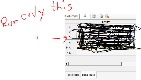 I am using Local data of Test studio for data driving my tests. How can I use only a single row of data Iteration from Local data table ?