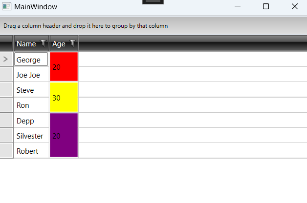 Now I want to merge Age cells, I want to change the background of merged Age cells based on the value of "Name"(not "Age"), I want to obtain all the Employee data items corresponding to the current merged cell in the SelectStyle method, any idea?