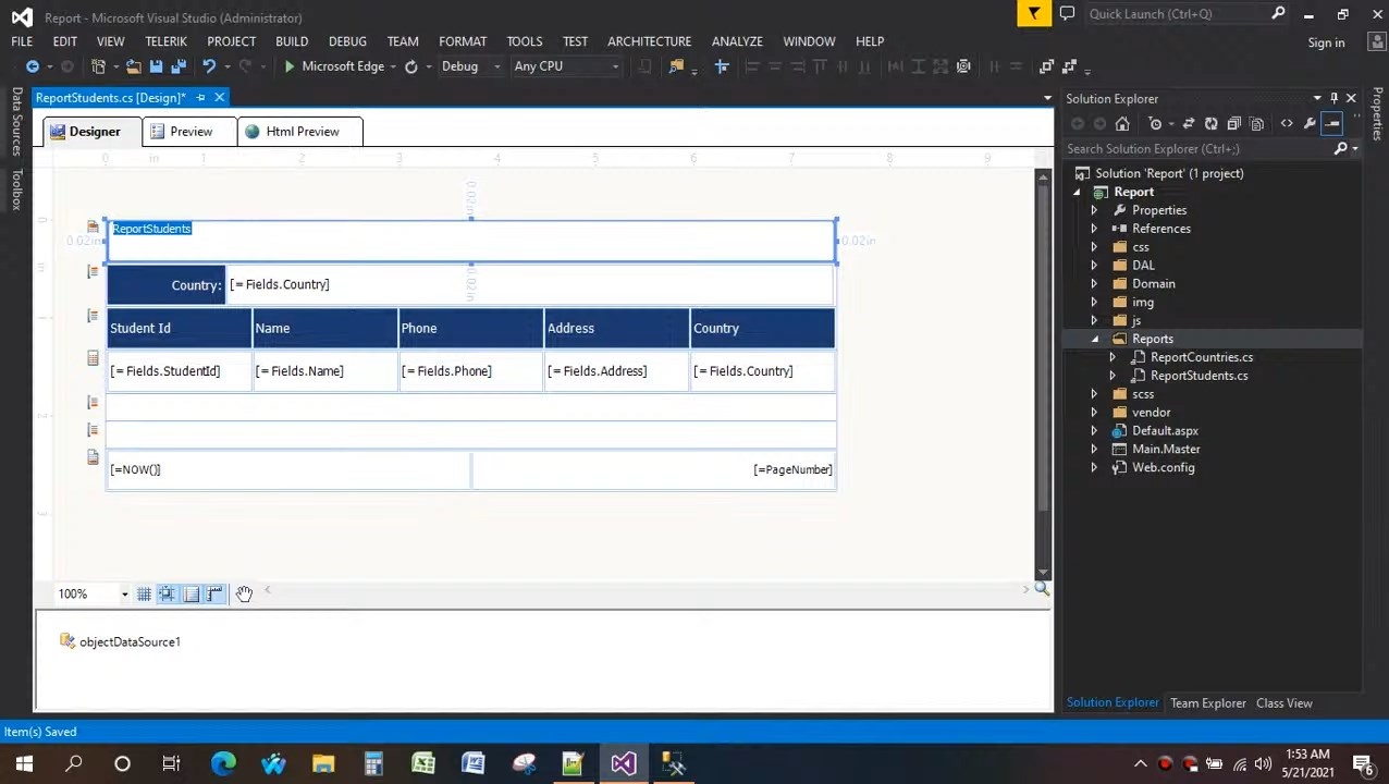 In normal mode i click on .trdp file run "Reporting Designer" Out of the visual studio