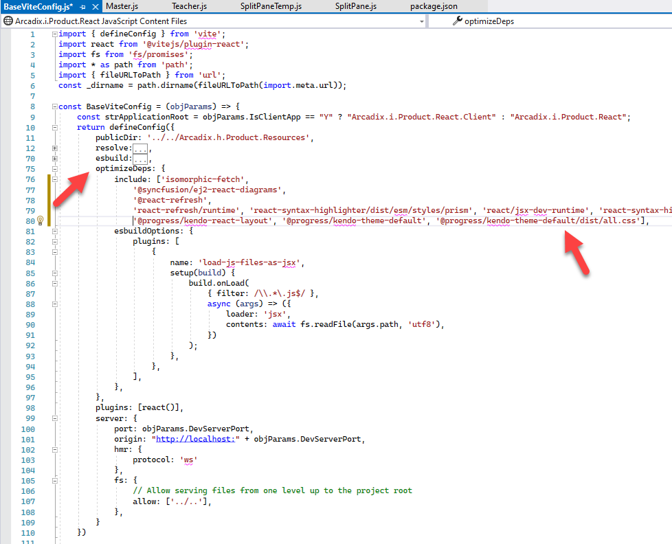 Failed to resolve import "@progress/kendo-theme-default/dist/all.css" from "..\Arcadix.i.Product.React\Framework\Controls\SplitPane\SplitPaneTemp.js".