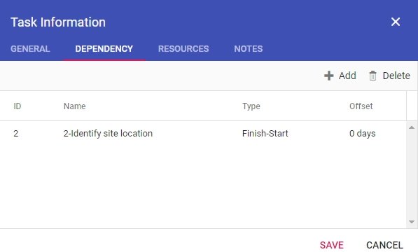 In the Syncfusion Gantt Control, it's very easy to show/set the task dependencies (see screenshot of task properties bellow).