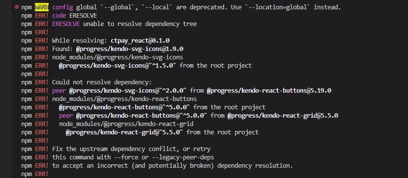 I want to upgrade kendo react Grid component(@progress/kendo-react-grid@5.5.0)to version 5.5.0. but its showing dependency errors related some other components as well. Please help on this issue.