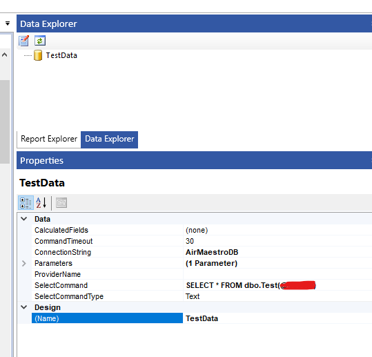 I can't get any columns to show in the Data Explorer when setting up a SQL Data Source with a command text that calls a SQL TVF function.