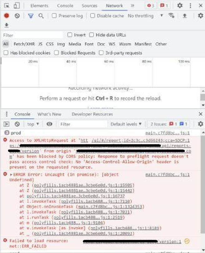 Any guidance as to what to review on the clients browsers to troubleshoot this issue will be highly appreciated. When trying from different locations, the same report works as expected. I think that something is blocking the CORS headers somehow.